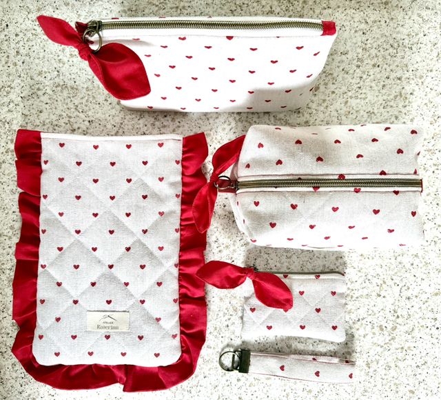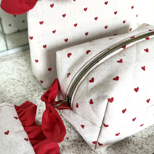 Trousse rectangulaire – Cœurs rouges